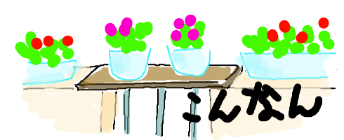 ベランダの塀に板を渡してそこに植木鉢やプランターを置いていた。