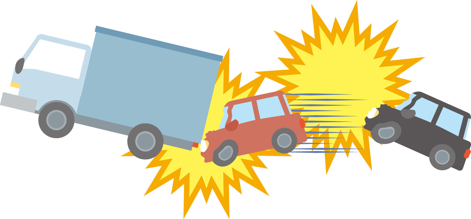 押し出された私の車は、道端で停車してた大型トラックに突っ込んだのだそう(第三の衝撃)。